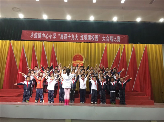 木鎮(zhèn)鎮(zhèn)中心小學舉行“喜迎十九大 紅歌滿校園“大合唱比賽