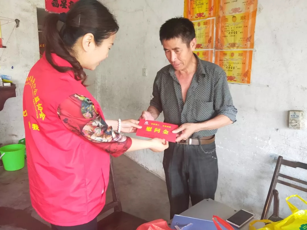 志愿者們詳細(xì)地了解孩子的病情,并鼓勵她們要堅持就醫(yī),一定要堅強起來,要相信在大家的共同努力下,一定能夠克服困難,孩子一定會好起來的。鄭愛武主席簡單介紹了我協(xié)會在搭建愛心橋梁、幫助困難群眾、保護綠水青山等志愿者活動中一些感人事跡;常態(tài)化“向陽花開”公益助學(xué)項目實施的目的、救助資金來源渠道等情況。在杜村中學(xué)校長蔡崇智的見證下,把3000元慰問金交給了曹月善父親手中。
