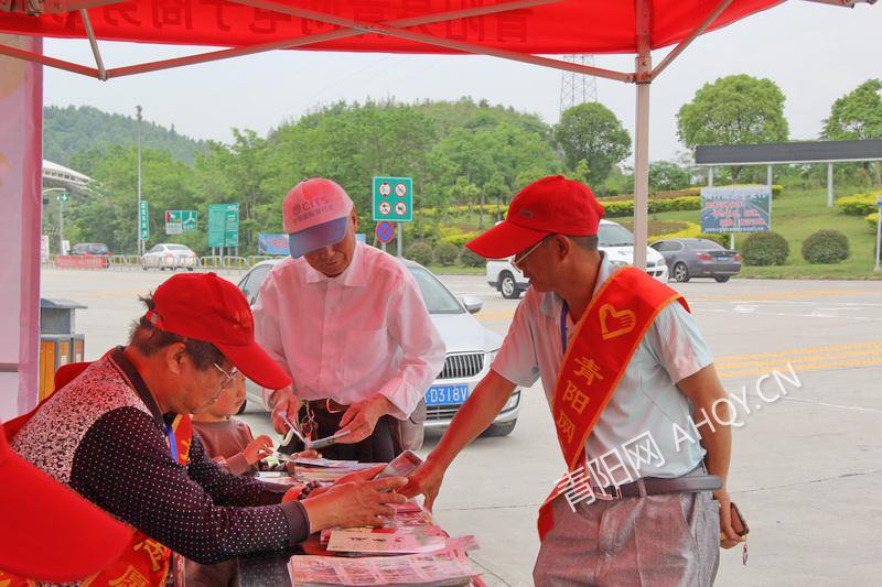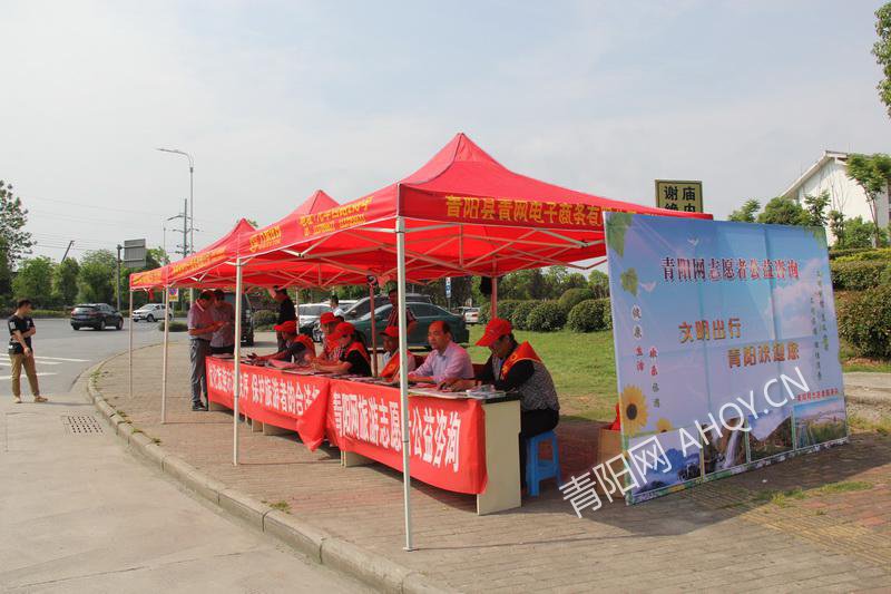 為提升游客和廣大市民文明旅游意識(shí),營造文明、誠信的旅游環(huán)境,進(jìn)一步做好創(chuàng)建文明旅游工作,全面提升公民文明旅游素質(zhì)。4月30日上午,在青陽高速出口,一群身披“青陽網(wǎng)志愿者”的綬帶,佩戴志愿者小紅帽的青陽網(wǎng)志愿者們正熱情詳細(xì)的解答著游客們的詢問,并為他們免費(fèi)發(fā)放青陽旅游地圖、旅游景區(qū)宣傳冊資料。