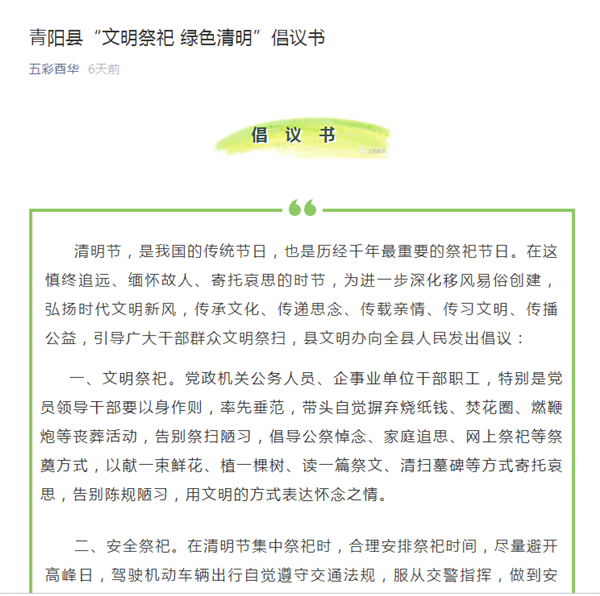 酉華鎮(zhèn):倡導(dǎo)文明祭祀 過綠色清明
