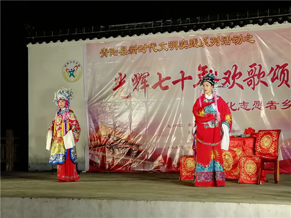 青陽(yáng)縣“光輝七十年 歡歌頌祖國(guó)”文化志愿者鄉(xiāng)村巡演活動(dòng)在廟前鎮(zhèn)開展