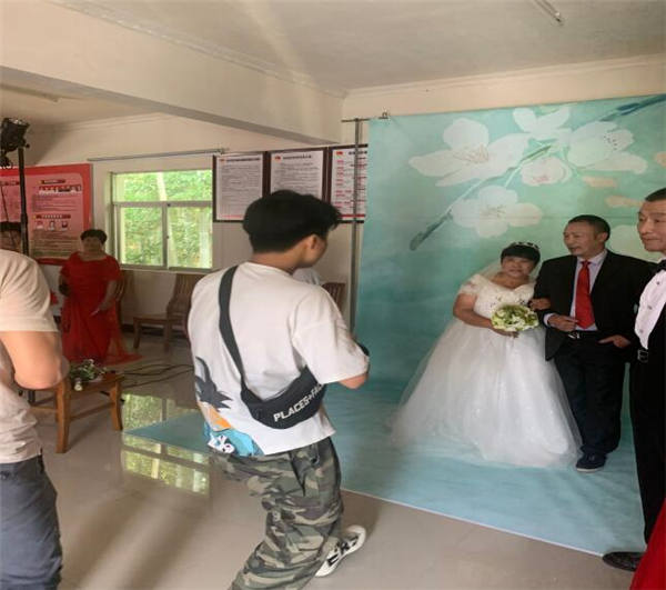 “爺爺和奶奶在靠近一點,笑一笑把牙齒露出了,回憶一下你們當(dāng)初結(jié)婚時的場景?!?nbsp;7月2號杜村鄉(xiāng)新時代文明實踐所傳出了爺爺奶奶歡快的笑聲。金婚銀婚對于一對夫妻來說難能可貴,他們攜手走過50年的漫漫長路,能坐在一起拍攝下他們具有紀(jì)念意義的婚紗照意義非凡?!耙郧笆菦]有條件,現(xiàn)在有條件了人卻老了。這是我們第一次拍婚紗照,以后也不可能有第二次了”,汪老師感嘆道。在拍攝間隙,老爺爺一直向攝影師道謝,而在身旁的老伴兒則細(xì)心為他整理衣領(lǐng)、領(lǐng)帶。雖說老人們以前從未拍過婚紗照,但在鏡頭面前也像年輕人一樣,彼此雙手緊握,幸福而又深情地凝視著一起相依相伴走過幾十年的老伴兒,眉眼間不變的還是那相伴一生的承諾。