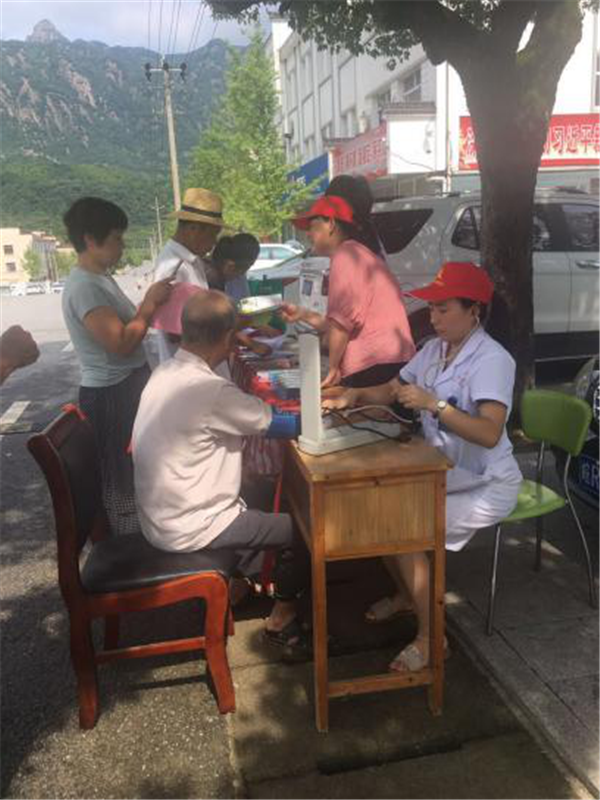 活動(dòng)現(xiàn)場(chǎng),志愿者協(xié)助鎮(zhèn)衛(wèi)生院醫(yī)護(hù)人員為居民現(xiàn)場(chǎng)測(cè)量血壓,指導(dǎo)合理用藥,對(duì)常見(jiàn)慢性病、多發(fā)病的預(yù)防和治療提供專(zhuān)業(yè)的指導(dǎo)。對(duì)于前來(lái)咨詢的群眾,專(zhuān)家熱情接待,并耐心答疑解惑。