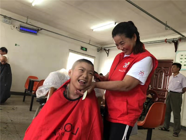 江和珍還是“向日葵尊老敬老服務(wù)隊”的一名老隊員,為了多做奉獻,也能像其他“葵花籽一樣”為敬老院的老人理發(fā),她自費購買了理發(fā)工具,并向其他隊員學(xué)會了理發(fā)技術(shù),每月至少兩次去基層鄉(xiāng)鎮(zhèn)敬老院為老人們理發(fā)、剃須、洗頭,如蓉城、杜村、九華、木鎮(zhèn)等鄉(xiāng)鎮(zhèn)敬老院,都有她留下的足跡、揮灑的汗水。有一次,她發(fā)現(xiàn)杜村敬老院一位體胖老人衣服不合身,便抽空上街,及時為這位老人做了兩條長褲,隨后為他穿在身上,使這位孤寡老人十分感激。她還時常微笑著與老人們聊天,叮囑他們保重身體,給他們送去了兒女般的溫暖與關(guān)愛。敬老院的老人問她:我們非親非故,你為什么對我們這樣好?她隨口說:好人好自己。再說,沒有人能夠永遠年輕,我們也有老去的那一天,所以要善待老人。