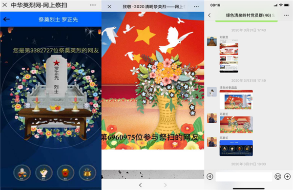 蓉城鎮(zhèn)新時代文明實踐所發(fā)出倡議后,各村、社區(qū)新時代文明實踐站紛紛響應(yīng),引導(dǎo)轄區(qū)黨員干部、居民群眾、退役軍人、學(xué)生等群體點(diǎn)擊鏈接進(jìn)行線上祭掃,并為烈士鞠躬、獻(xiàn)花、點(diǎn)燭、上香,在留言板塊進(jìn)行留言寄托哀思。