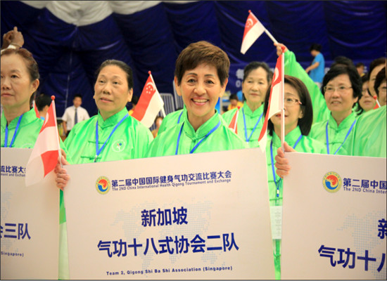 常建平在致辭時(shí)說,此次大會(huì)的舉行,旨在加強(qiáng)中外體育文化交流,推動(dòng)健身氣功國際推廣,為中外健身氣功愛好者搭建交流展示的平臺(tái)。陳海軍說,健身氣功經(jīng)過千百年的傳承發(fā)展,已成為世界體育運(yùn)動(dòng)的一項(xiàng)重要內(nèi)容,傳播推廣健身氣功成為造福人類健康幸福的一項(xiàng)偉大事業(yè)。