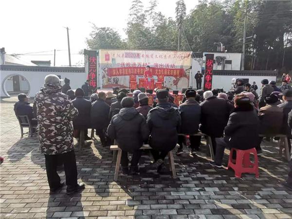12月6日,青陽(yáng)縣2020年文化惠民工程“送戲進(jìn)萬(wàn)村”演出活動(dòng)在廟前鎮(zhèn)廟前村慕善中心廣場(chǎng)開展。