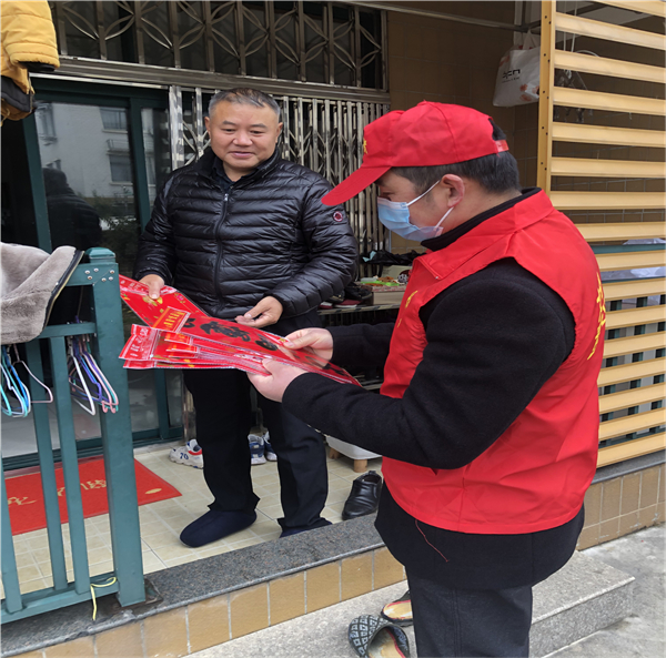 活動中,志愿者們將準(zhǔn)備好的春聯(lián)和福字送到小區(qū)居民手中,同時送上最真誠的新春祝福,居民手捧一幅幅精美的春聯(lián),一個個火紅喜慶的福字,喜悅之情溢于言表,整個小區(qū)洋溢著新春祥和的氣氛。隨后,志愿者們結(jié)合冬春季愛國衛(wèi)生運動要求,對樓道堆積物、綠化帶雜草垃圾、衛(wèi)生死角進行了全面清理,同時對小區(qū)樓道、垃圾桶等公共區(qū)域進行了重點清潔消毒。