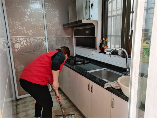 3月4日,蓉東村新時代文明實踐站組織志愿者開展愛心志愿者服務(wù)活動,到高齡老人許翠蘭家里幫忙打掃衛(wèi)生。許翠蘭是蓉東村五組村民,今年已經(jīng)95歲高齡,自身行動不便,和養(yǎng)子生活在一起。由于養(yǎng)子常年在工地做小工,家中無人收拾,導(dǎo)致家中環(huán)境臟、亂、差。志愿者們帶著抹布、掃帚、拖把來到她家,擦灰的擦灰、拖地的拖地、洗碗的洗碗,把她家從客廳到臥室,再到廚房、衛(wèi)生間里里外外打掃的干干凈凈??吹奖恢驹刚邆兇驋叩那鍧嵢缧碌募遥S翠蘭老人激動地說:“真得謝謝你們,謝謝你們一直關(guān)心、幫助我們,辛苦了!”