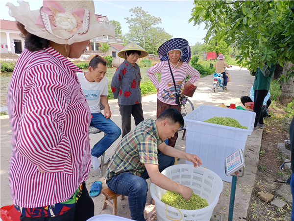 喬木鄉(xiāng)東源村金銀花大豐收,村民正在稱量金銀花